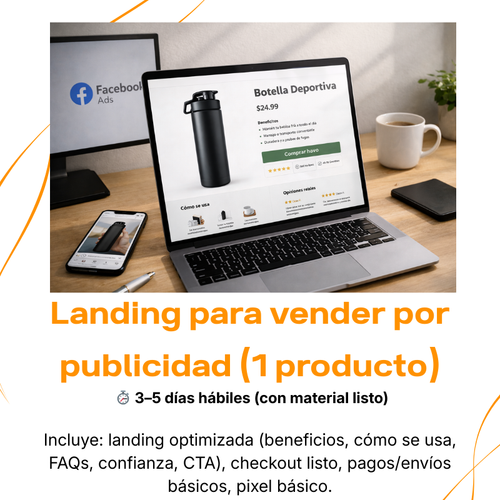 No. Dejo la tienda y/o landing lista para convertir, pero campañas y creatividades van aparte.